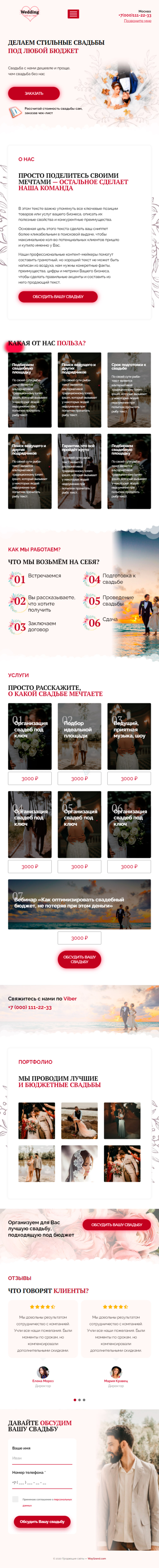 Закажите готовый продающий сайт лендинг #0440206 в Благовещенске за 1-3 дня «под ключ»: свёрстан, отрисован и готов к рекламе. Тематика шаблона «Организация свадеб».