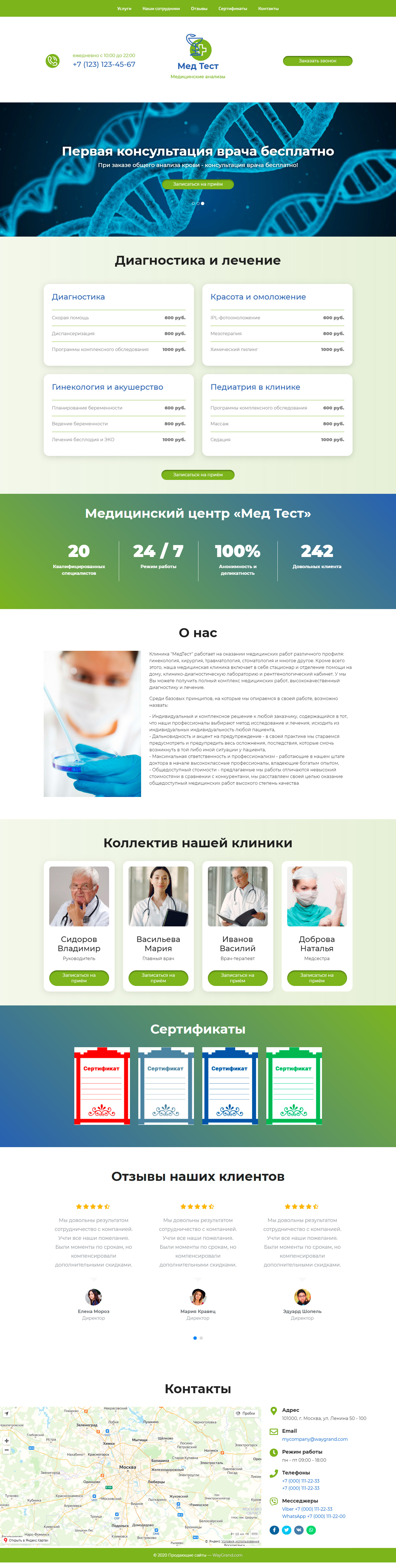 Закажите готовый продающий сайт лендинг #1025201 в Благовещенске за 1-3 дня «под ключ»: свёрстан, отрисован и готов к рекламе. Тематика шаблона «Медицинские анализы».