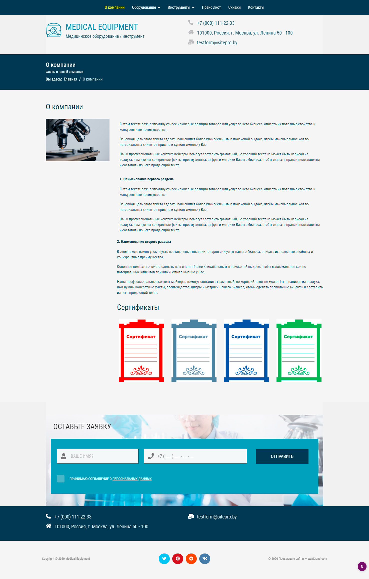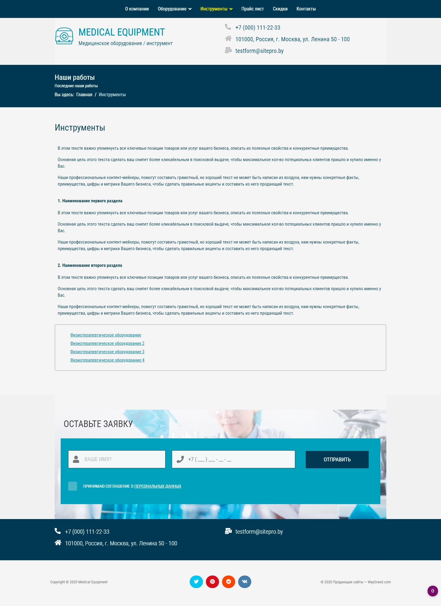 Закажите готовый продающий сайт визитка #1029301 в Благовещенске за 5-7 дня «под ключ»: свёрстан, отрисован и готов к рекламе. Тематика шаблона «Медицинское оборудование / инструмент».