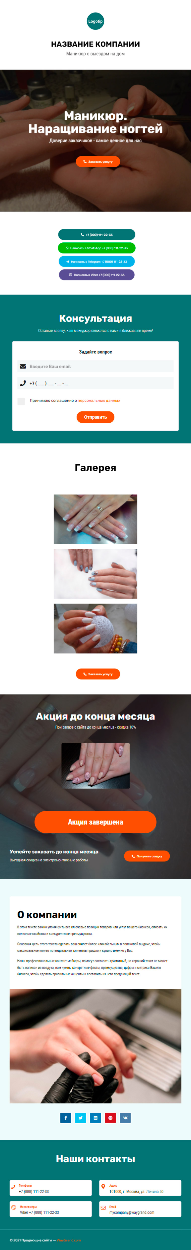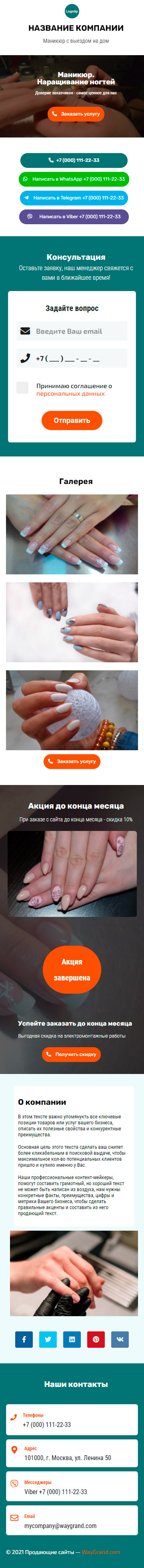 Закажите готовый продающий сайт визитка #1107101 в Благовещенске за 5-7 дня «под ключ»: свёрстан, отрисован и готов к рекламе. Тематика шаблона «Маникюр. Наращивание ногтей».