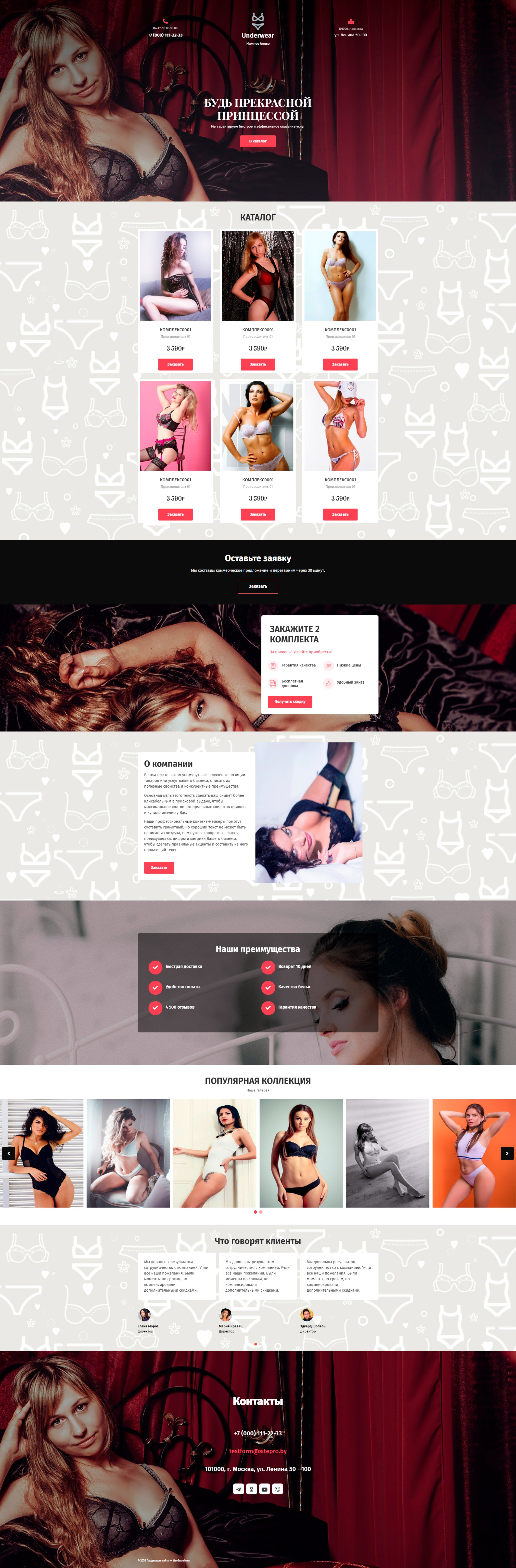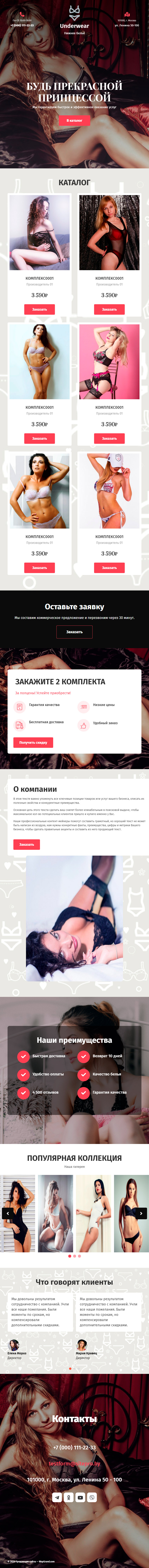 Закажите готовый продающий сайт лендинг #1514201 в Благовещенске за 1-3 дня «под ключ»: свёрстан, отрисован и готов к рекламе. Тематика шаблона «Нижнее белье».