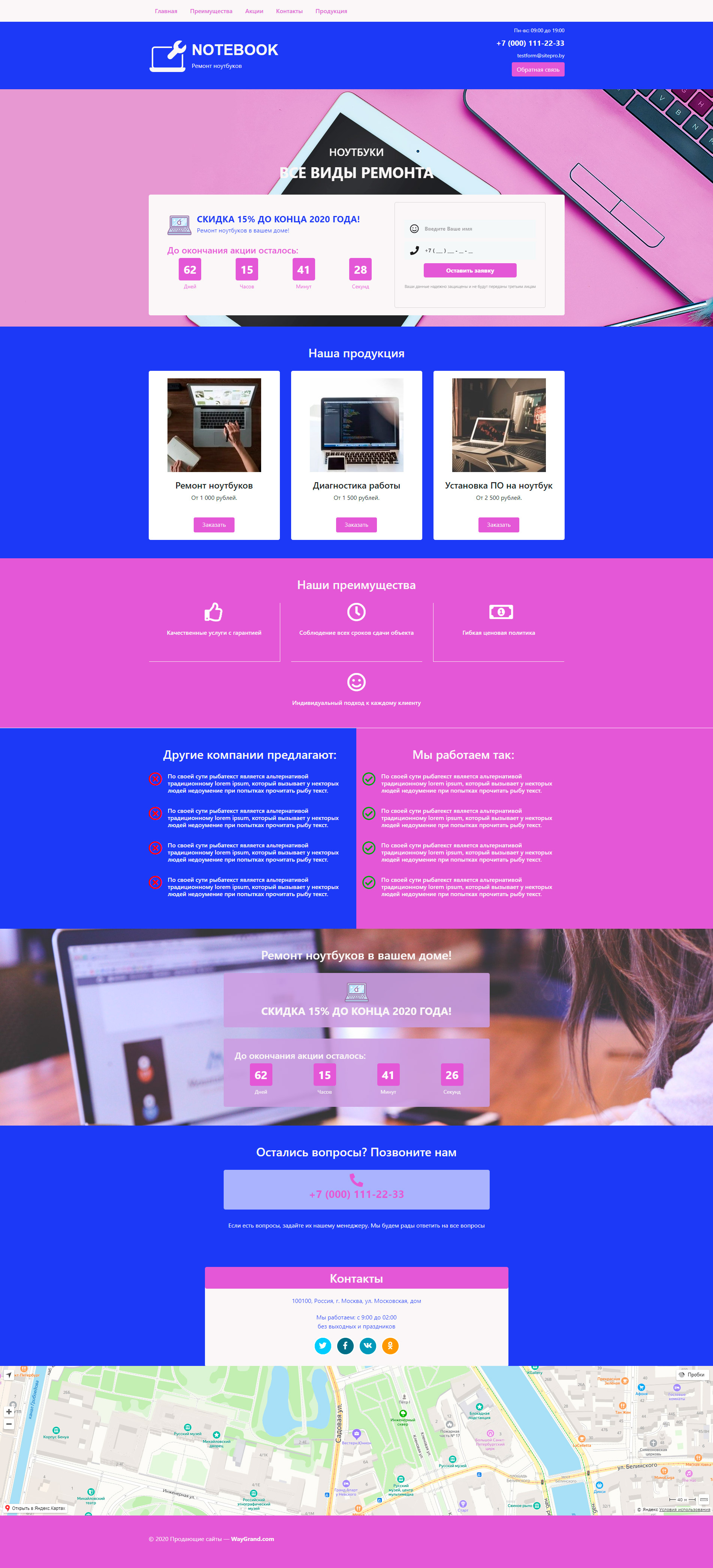 Закажите готовый продающий сайт лендинг #0719201 в Благовещенске за 1-3 дня «под ключ»: свёрстан, отрисован и готов к рекламе. Тематика шаблона «Ремонт ноутбуков».