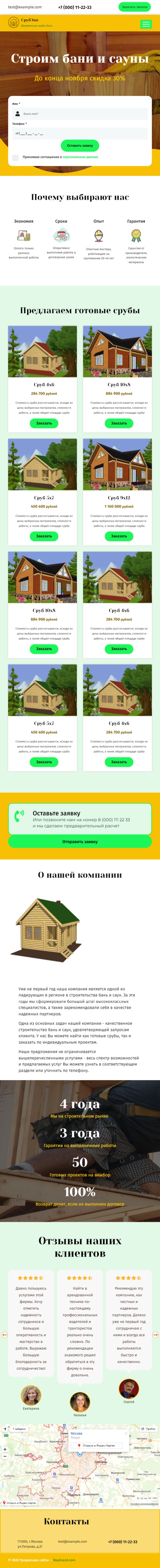 Закажите готовый продающий сайт лендинг #2172202 в Благовещенске за 1-3 дня «под ключ»: свёрстан, отрисован и готов к рекламе. Тематика шаблона «Строительство бань и саун».