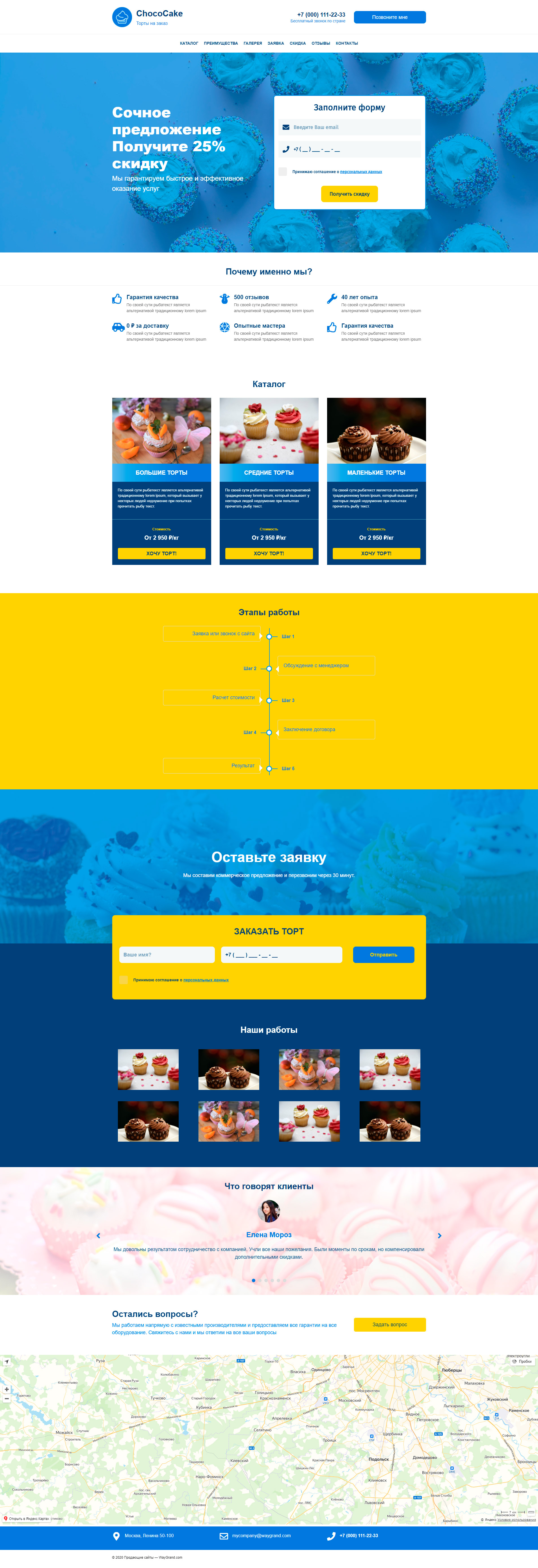 Закажите готовый продающий сайт лендинг #1711205 в Благовещенске за 1-3 дня «под ключ»: свёрстан, отрисован и готов к рекламе. Тематика шаблона «Торты на заказ».