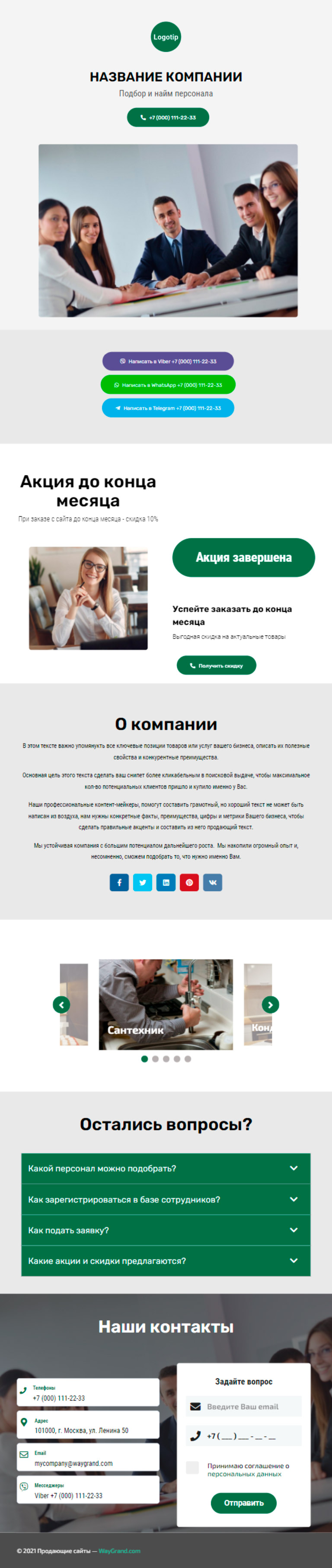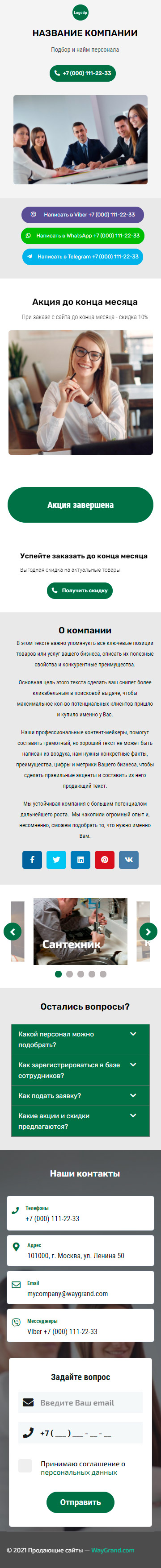 Закажите готовый продающий сайт визитка #1415101 в Благовещенске за 5-7 дня «под ключ»: свёрстан, отрисован и готов к рекламе. Тематика шаблона «Подбор и найм персонала».