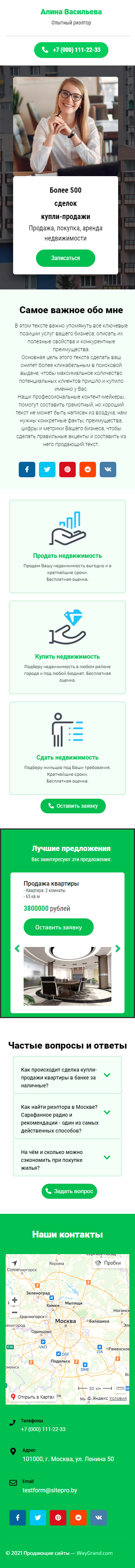 Закажите готовый продающий сайт визитка #2102101 в Благовещенске за 5-7 дня «под ключ»: свёрстан, отрисован и готов к рекламе. Тематика шаблона «Опытный риэлтор».