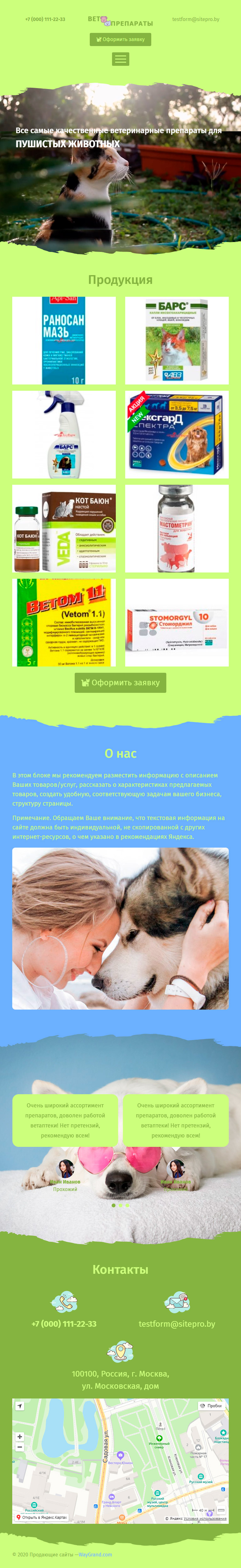 Закажите готовый продающий сайт лендинг #2305202 в Благовещенске за 1-3 дня «под ключ»: свёрстан, отрисован и готов к рекламе. Тематика шаблона «Ветпрепараты».