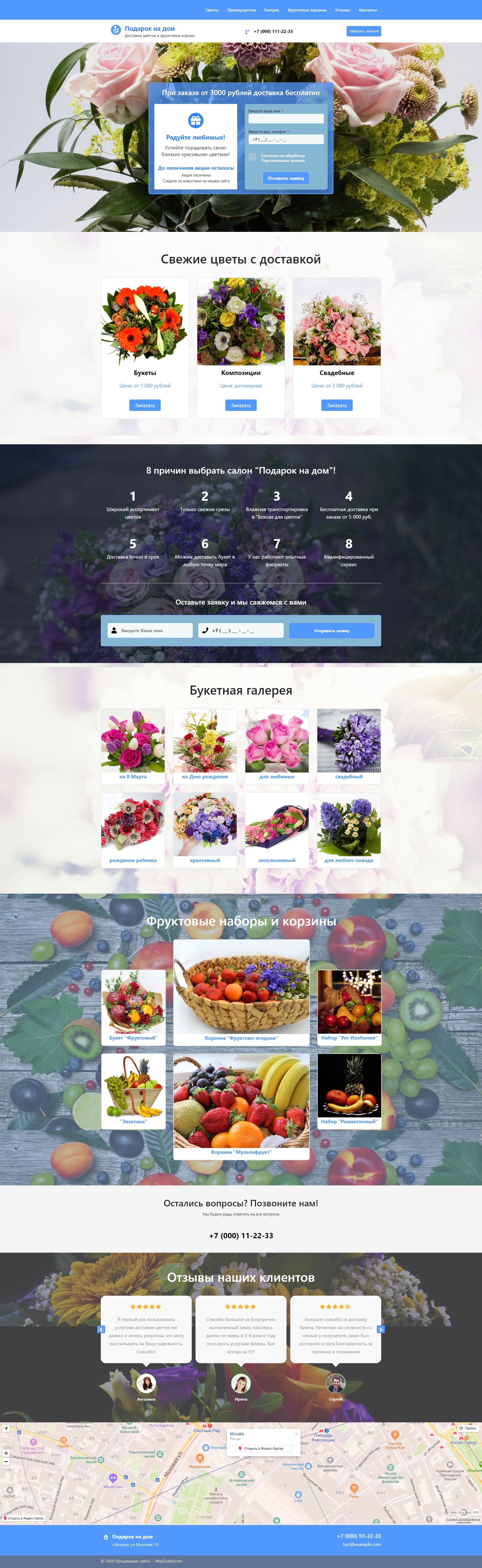 Закажите готовый продающий сайт лендинг #2404203 в Благовещенске за 1-3 дня «под ключ»: свёрстан, отрисован и готов к рекламе. Тематика шаблона «Доставка букетов на дом».