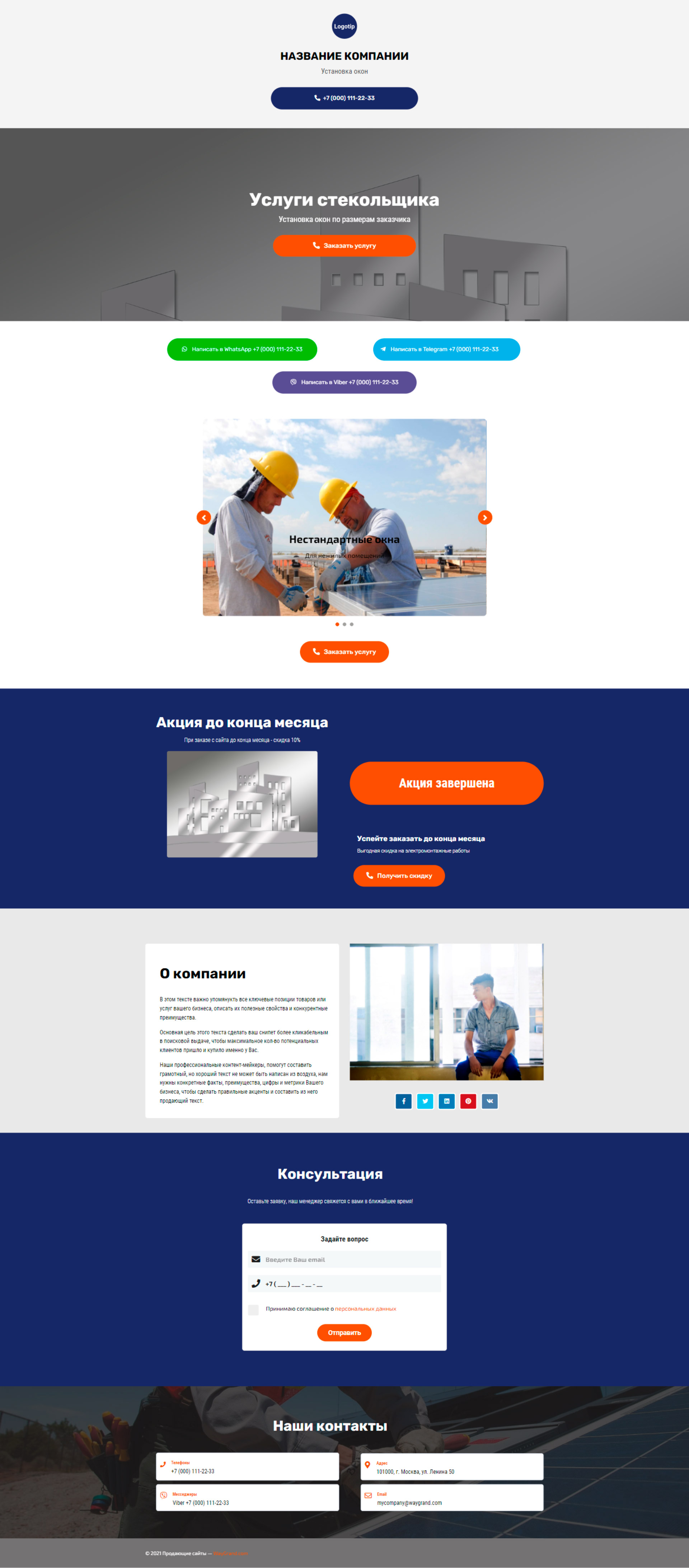 Закажите готовый продающий сайт визитка #2138101 в Благовещенске за 5-7 дня «под ключ»: свёрстан, отрисован и готов к рекламе. Тематика шаблона «Установка окон».