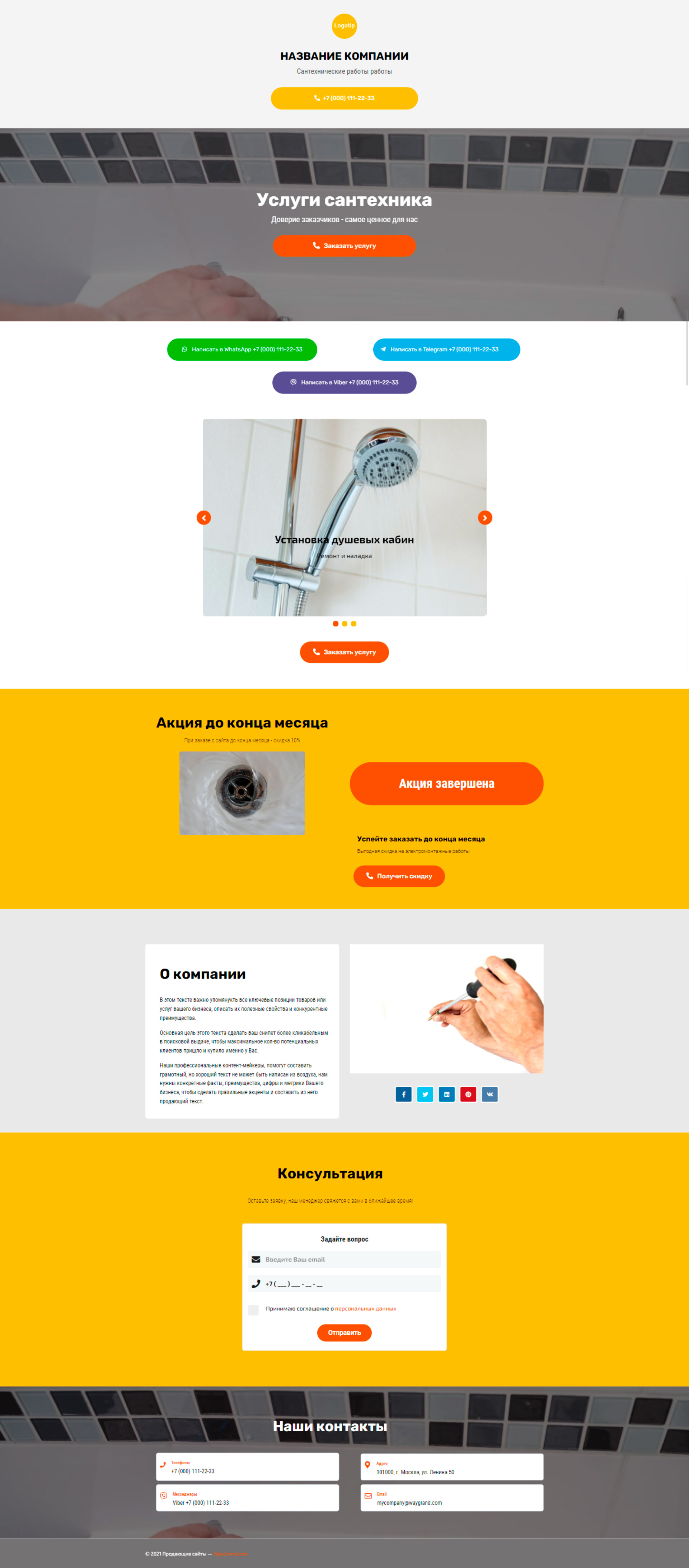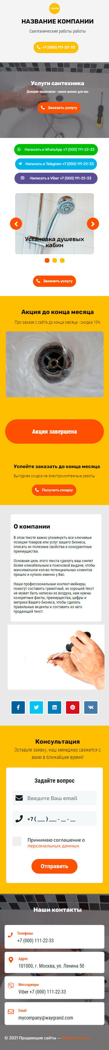 Закажите готовый продающий сайт визитка #2154101 в Благовещенске за 5-7 дня «под ключ»: свёрстан, отрисован и готов к рекламе. Тематика шаблона «Сантехнические работы».