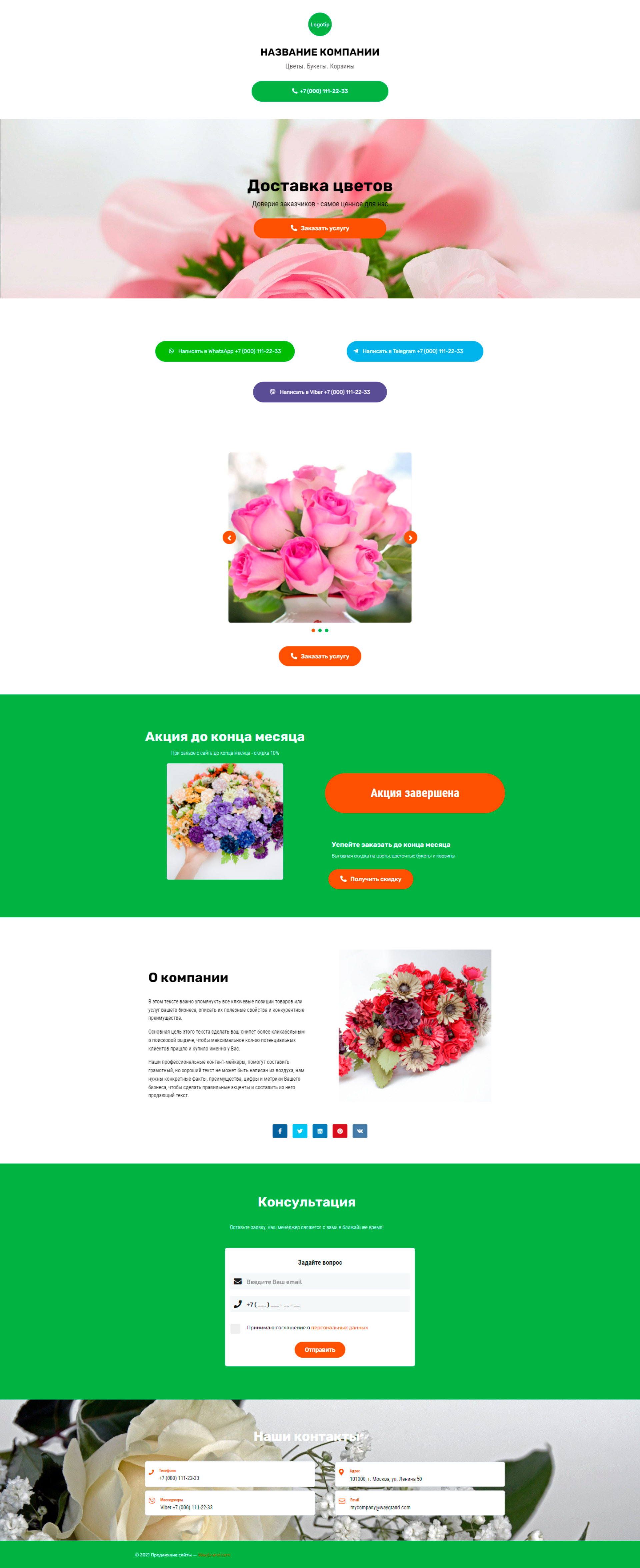 Закажите готовый продающий сайт визитка #2404101 в Благовещенске за 5-7 дня «под ключ»: свёрстан, отрисован и готов к рекламе. Тематика шаблона «Доставка цветов».