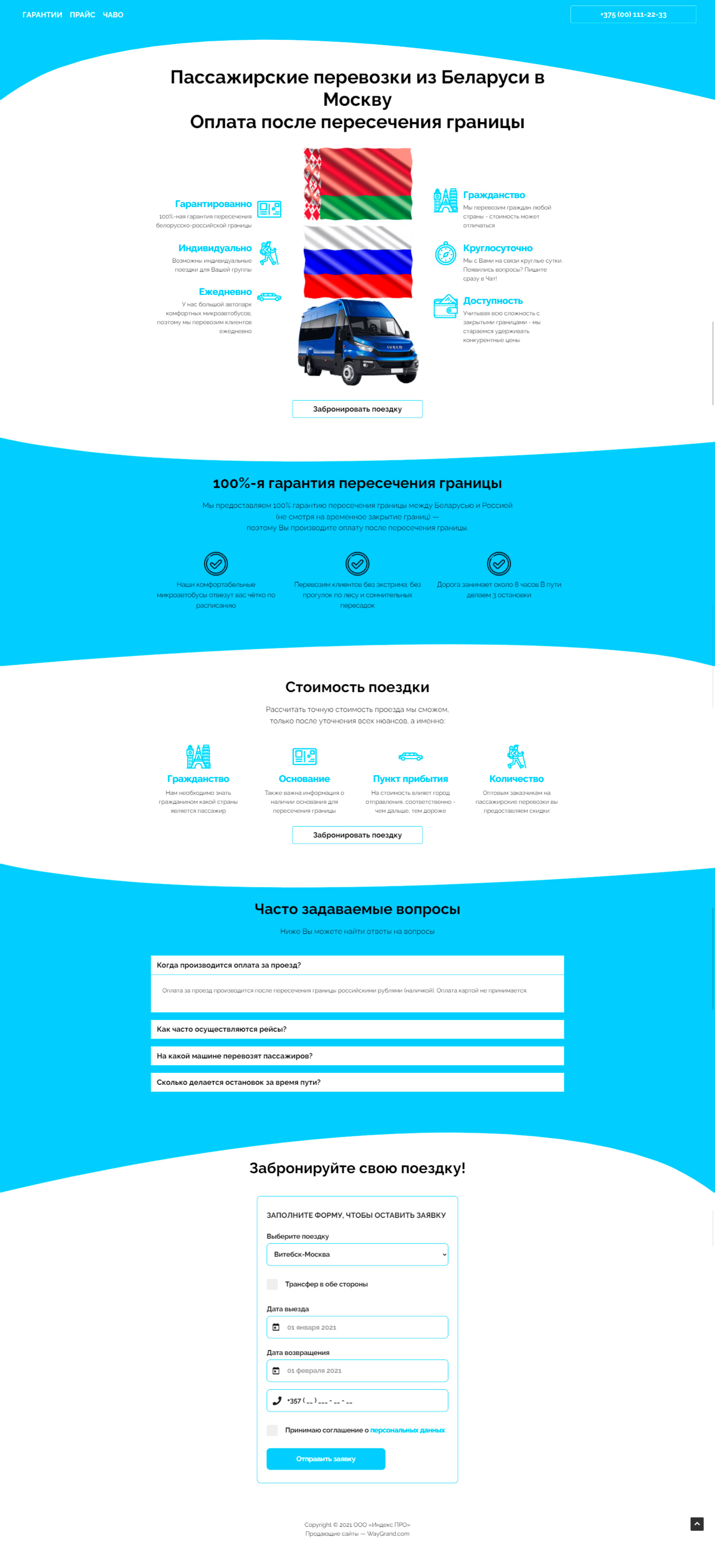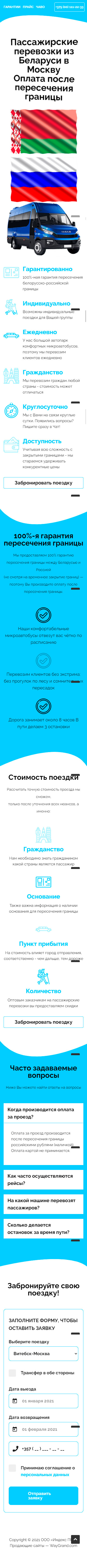 Закажите готовый продающий сайт лендинг #2528204 в Благовещенске за 1-3 дня «под ключ»: свёрстан, отрисован и готов к рекламе. Тематика шаблона «Пассажирские перевозки из Беларуси в Москву».