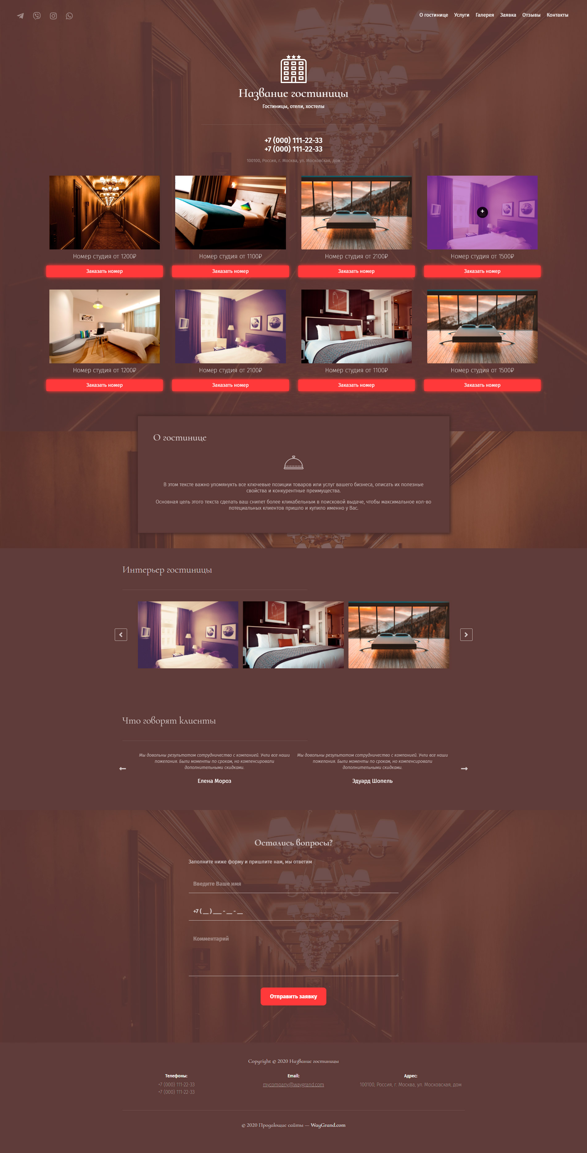 Закажите готовый продающий сайт лендинг #1905202 в Благовещенске за 1-3 дня «под ключ»: свёрстан, отрисован и готов к рекламе. Тематика шаблона «Гостиница, повышенный комфорт».