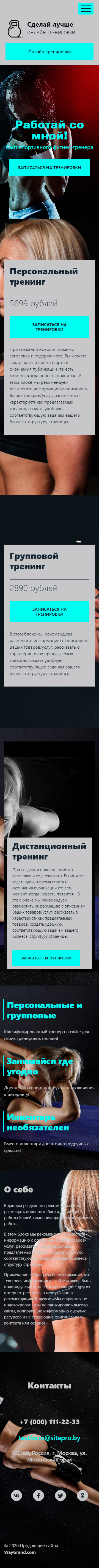 Закажите готовый продающий сайт лендинг #1955203 в Благовещенске за 1-3 дня «под ключ»: свёрстан, отрисован и готов к рекламе. Тематика шаблона «Фитнес тренер».