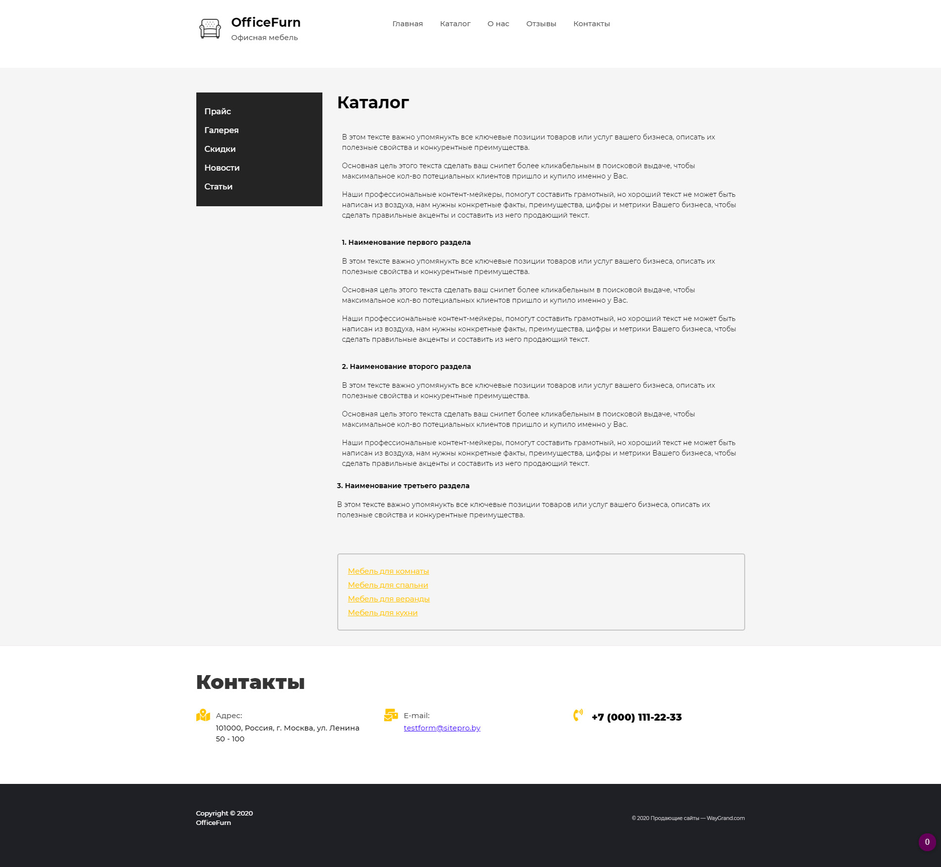 Закажите готовый продающий сайт визитка #0921301 в Благовещенске за 5-7 дня «под ключ»: свёрстан, отрисован и готов к рекламе. Тематика шаблона «Офисная мебель».