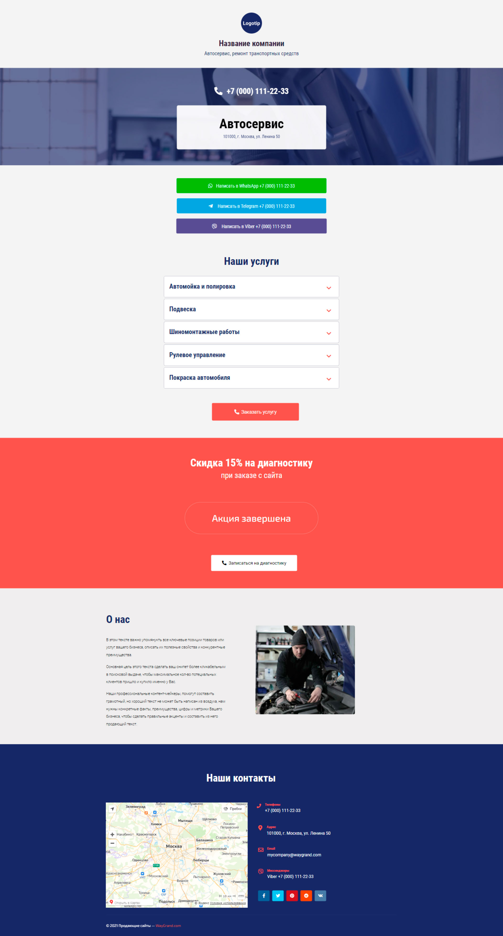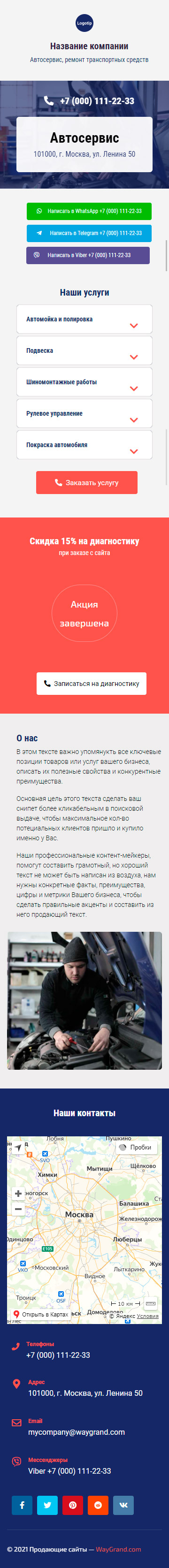 Закажите готовый продающий сайт визитка #0210101 в Благовещенске за 5-7 дня «под ключ»: свёрстан, отрисован и готов к рекламе. Тематика шаблона «Автосервис, ремонт транспортных средств».