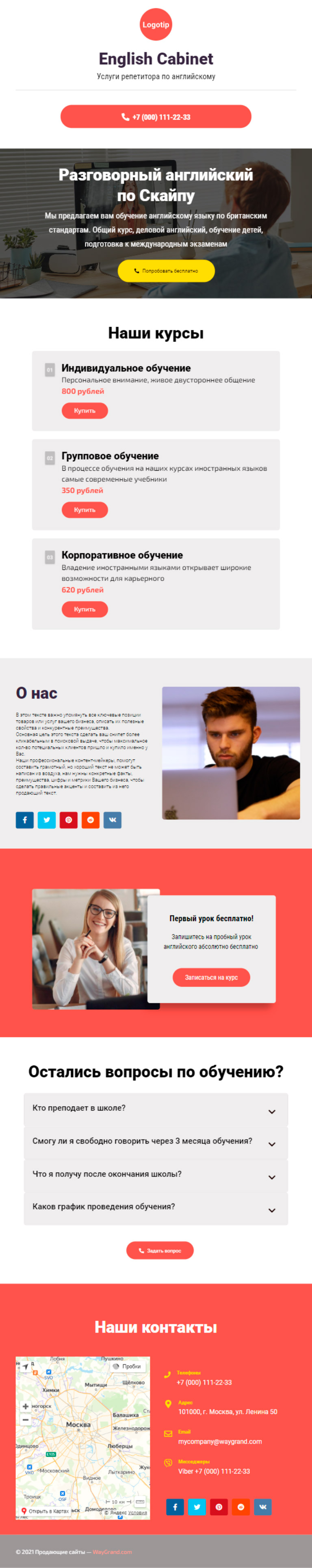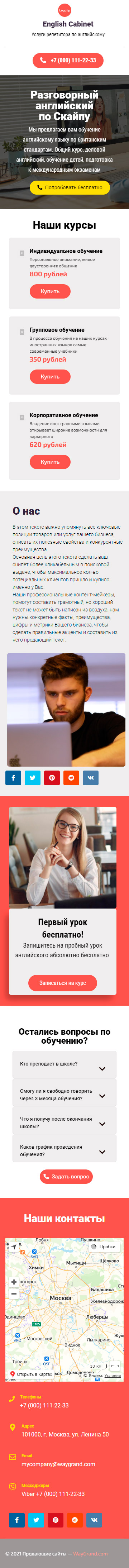Закажите готовый продающий сайт визитка #1463101 в Благовещенске за 5-7 дня «под ключ»: свёрстан, отрисован и готов к рекламе. Тематика шаблона «Услуги репетитора по английскому».