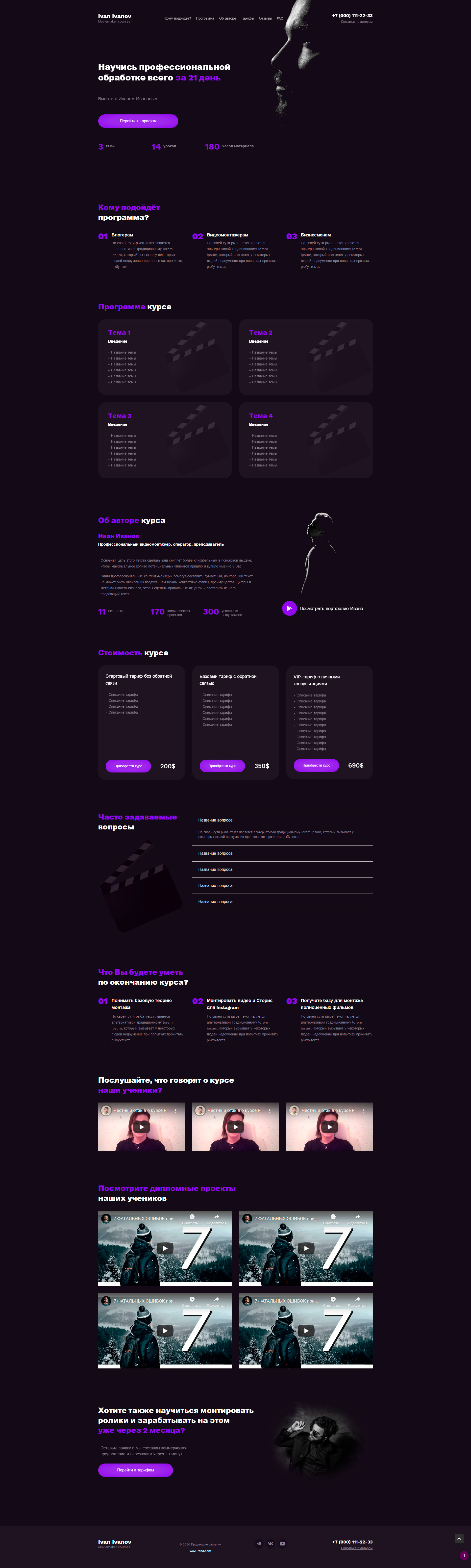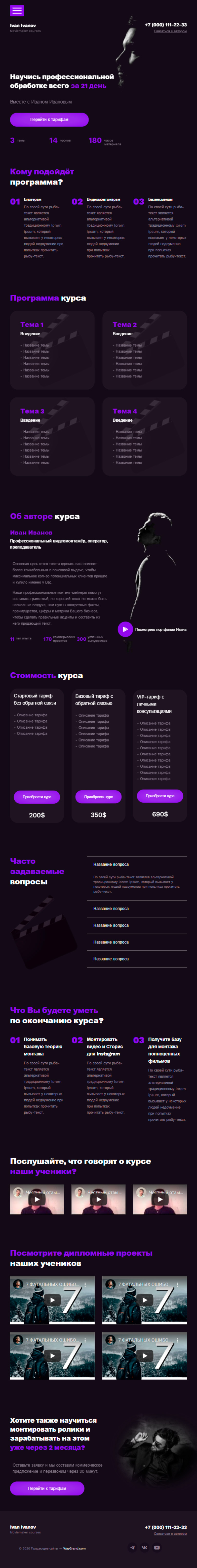 Закажите готовый продающий сайт лендинг #1467204 в Благовещенске за 1-3 дня «под ключ»: свёрстан, отрисован и готов к рекламе. Тематика шаблона «Для курса видеомонтажа».