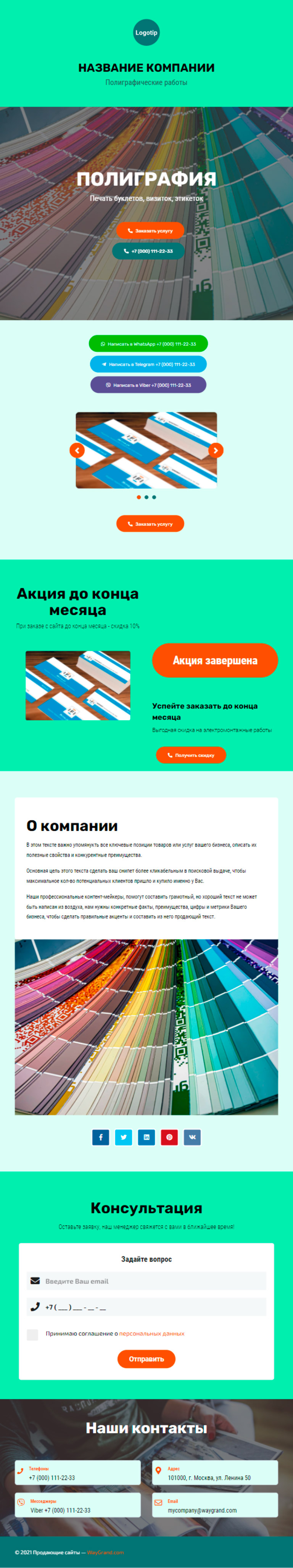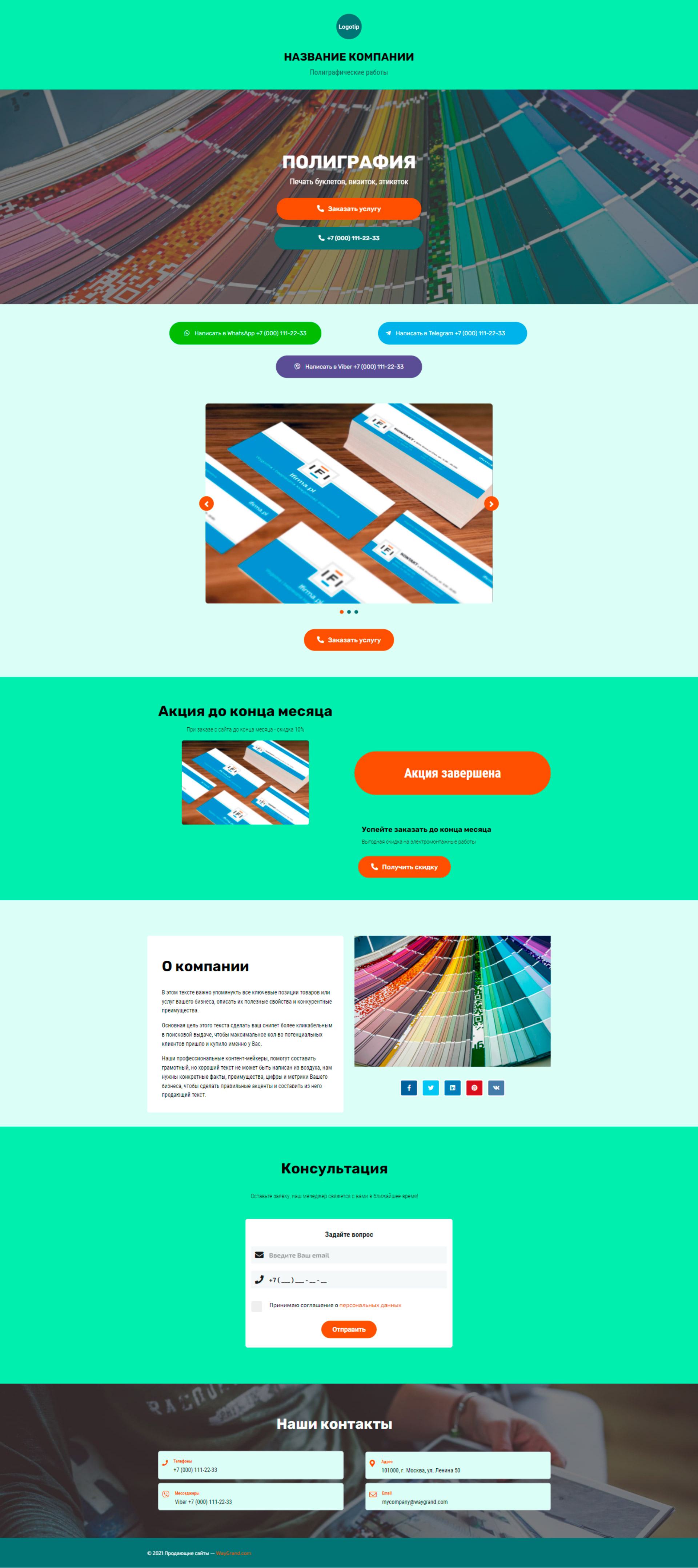 Закажите готовый продающий сайт визитка #1826101 в Благовещенске за 5-7 дня «под ключ»: свёрстан, отрисован и готов к рекламе. Тематика шаблона «Полиграфия».