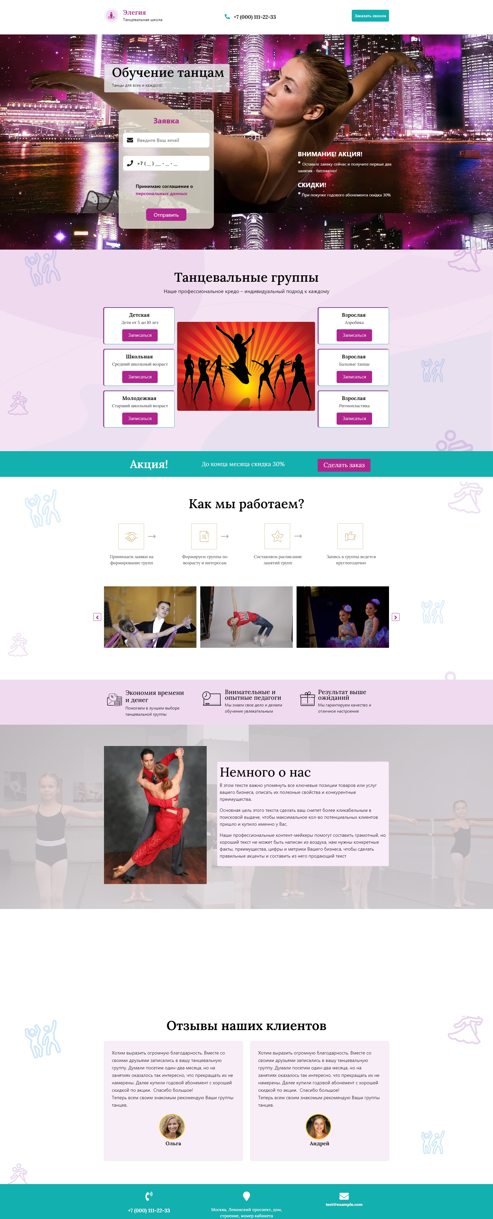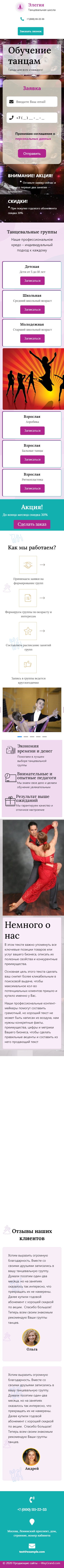 Закажите готовый продающий сайт лендинг #1923201 в Благовещенске за 1-3 дня «под ключ»: свёрстан, отрисован и готов к рекламе. Тематика шаблона «Обучение танцам».