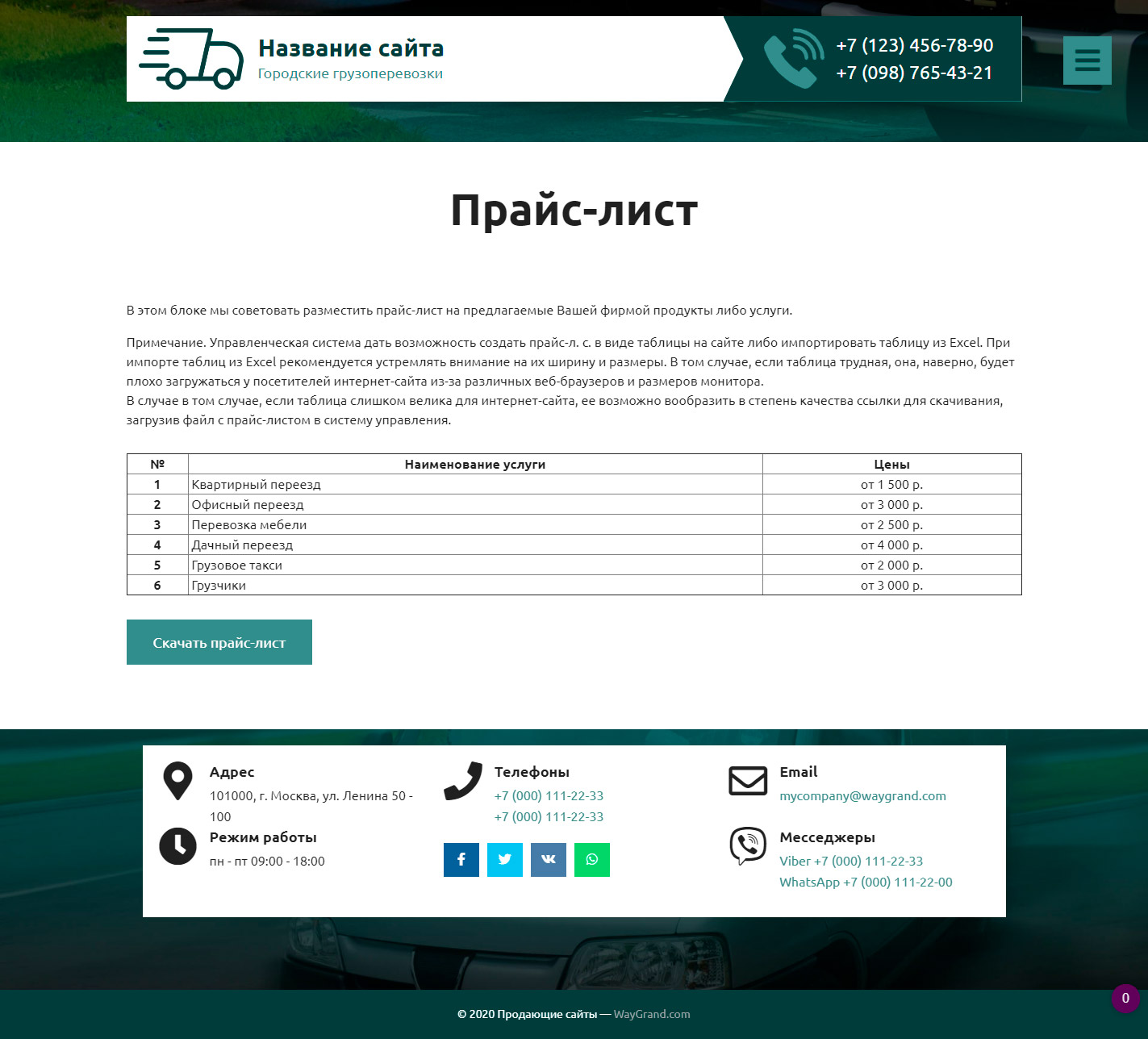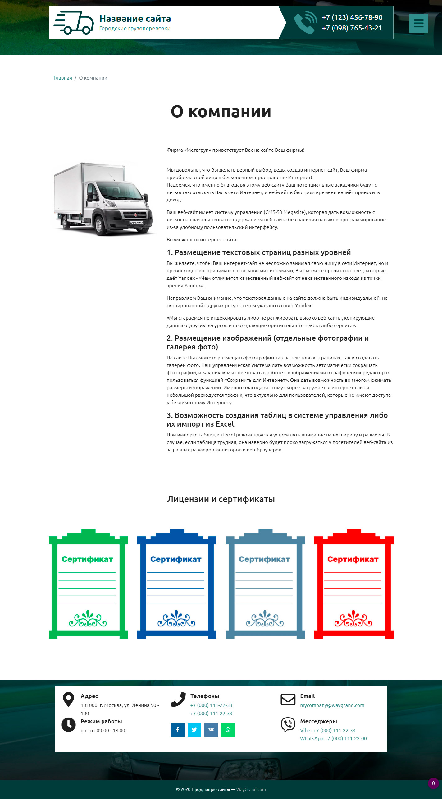 Закажите готовый продающий сайт визитка #2515302 в Благовещенске за 5-7 дня «под ключ» по доступным ценам на WayGrand: свёрстан, отрисован и готов к рекламе. Тематика шаблона «Городские грузоперевозки».