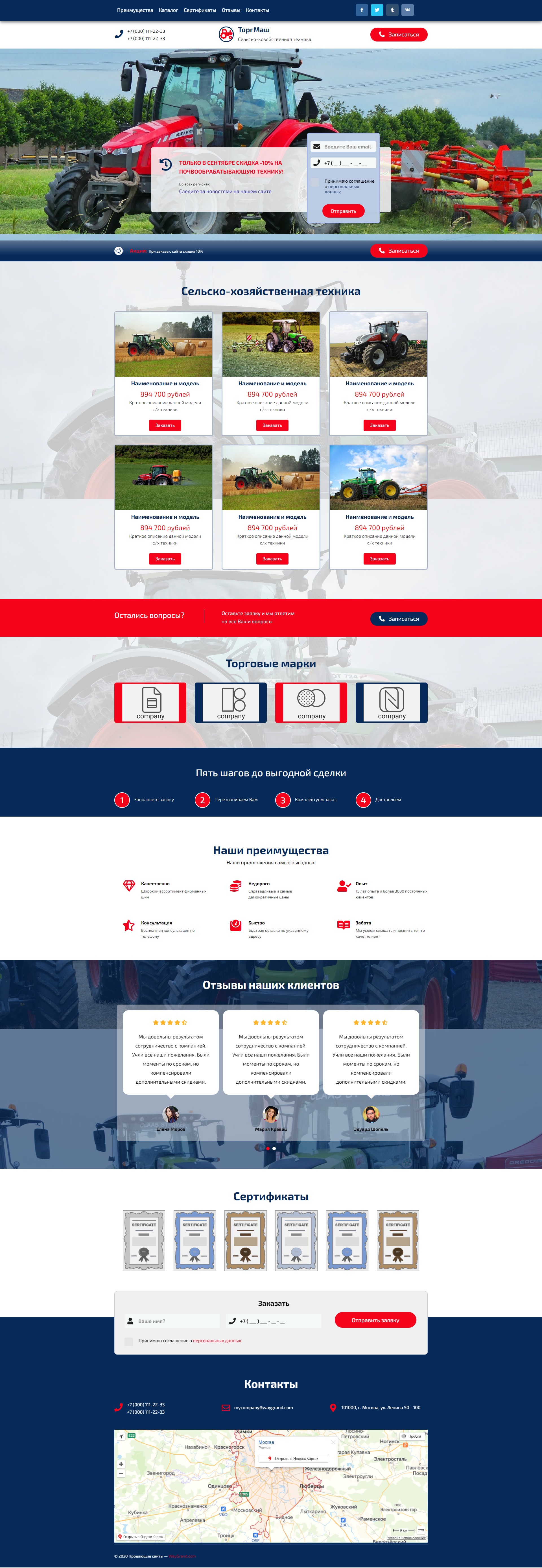 Закажите готовый продающий сайт лендинг #2553202 в Благовещенске за 1-3 дня «под ключ»: свёрстан, отрисован и готов к рекламе. Тематика шаблона «Сельско-хозяйственная техника».