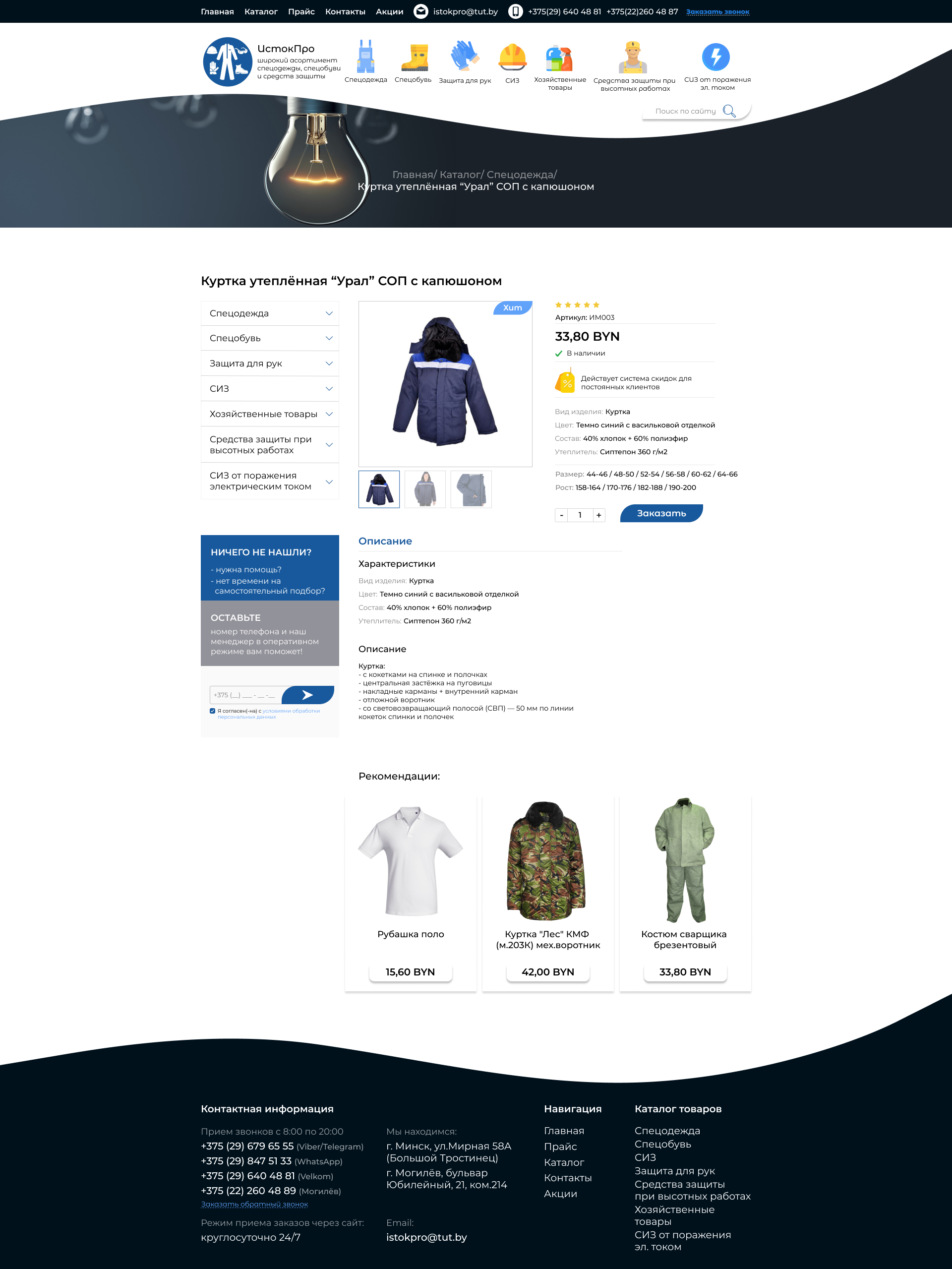 Занимаемся продажей и изготовлением специализированной одежды уже 8 лет. Основная проблема заключается в привлечении клиентов, чтобы расширить список решили сделать сайт каталог. Ребята быстро и качественно нам в этом помогли, спасибо!