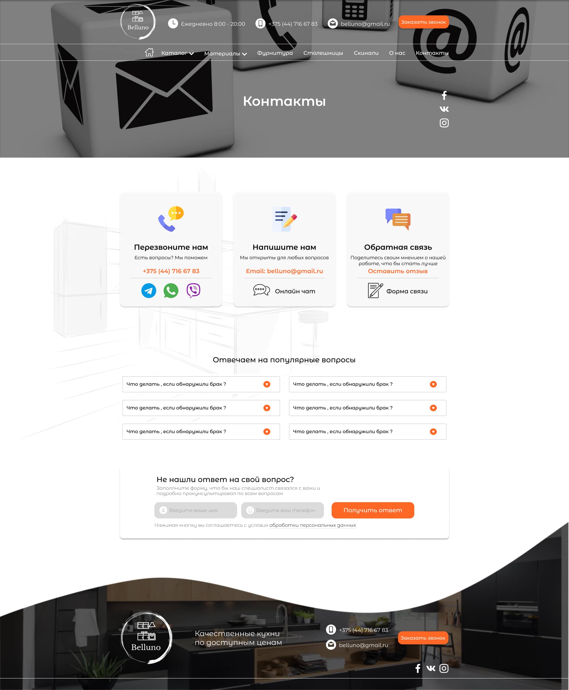 Закажите готовый продающий сайт визитка #282 в Благовещенске за 5-7 дня «под ключ»: свёрстан, отрисован и готов к рекламе. Тематика шаблона «Кухни».