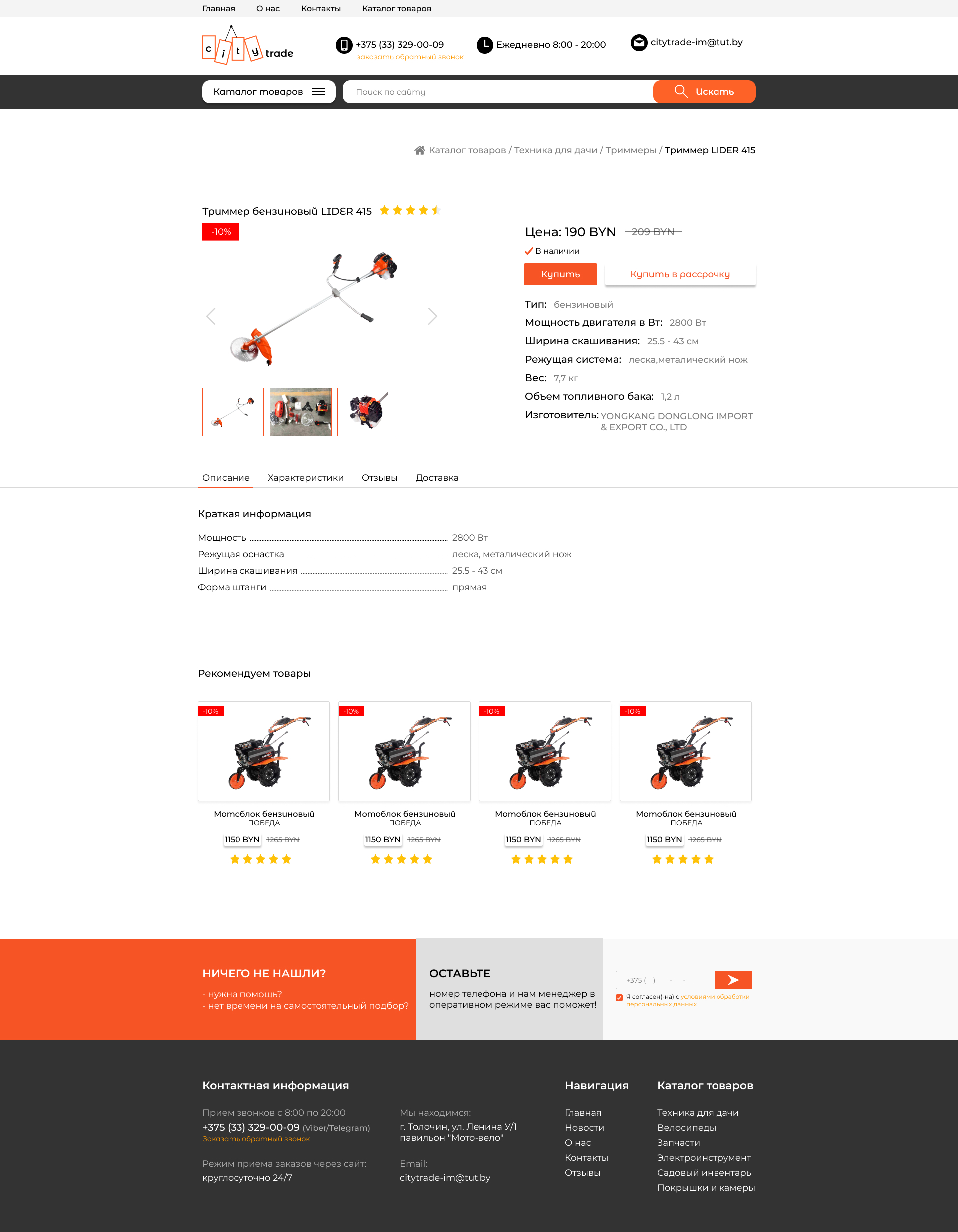 Закажите готовый продающий сайт визитка #281 в Благовещенске за 5-7 дня «под ключ»: свёрстан, отрисован и готов к рекламе. Тематика шаблона «Розничная продажа садовой техники, велосипедов».