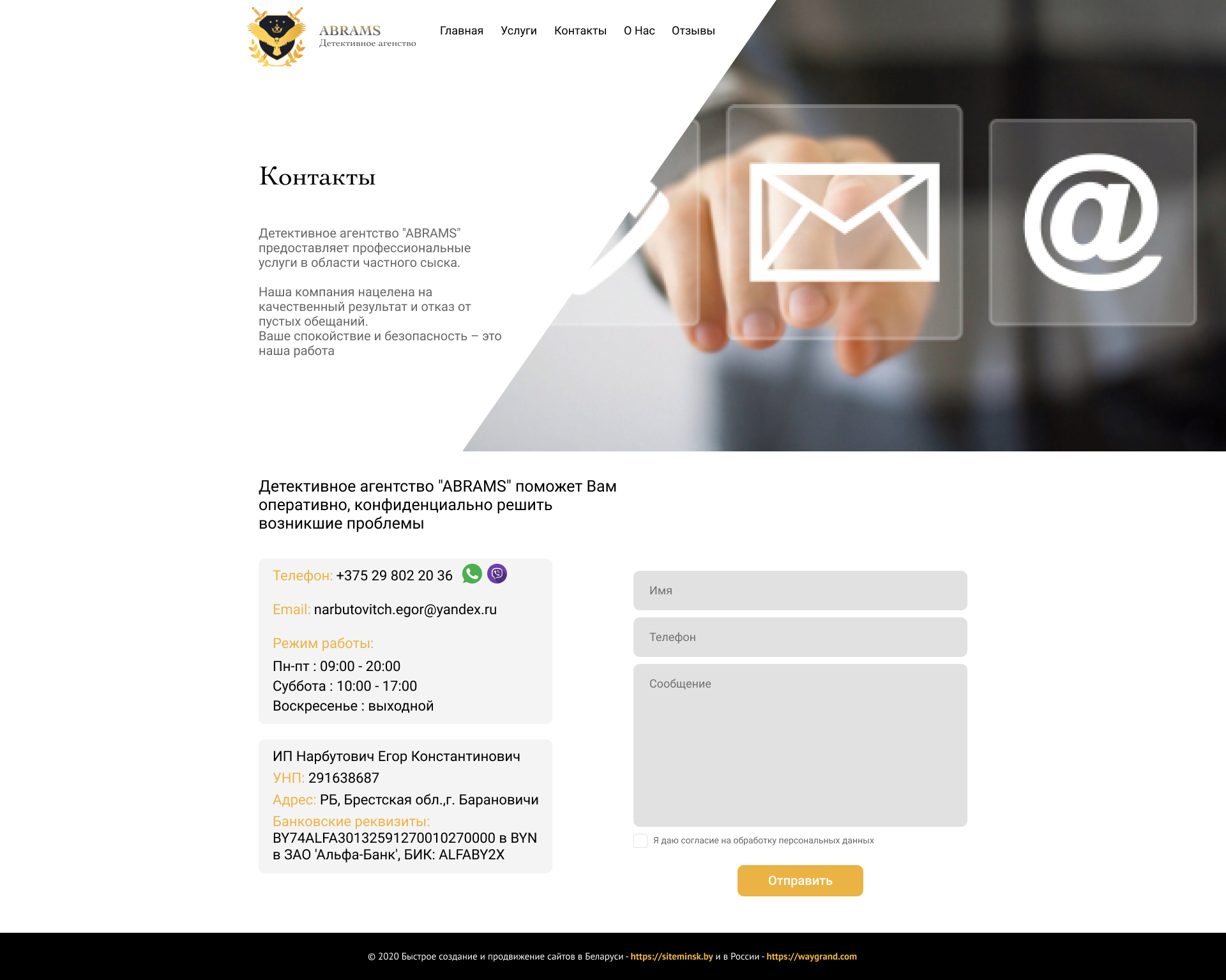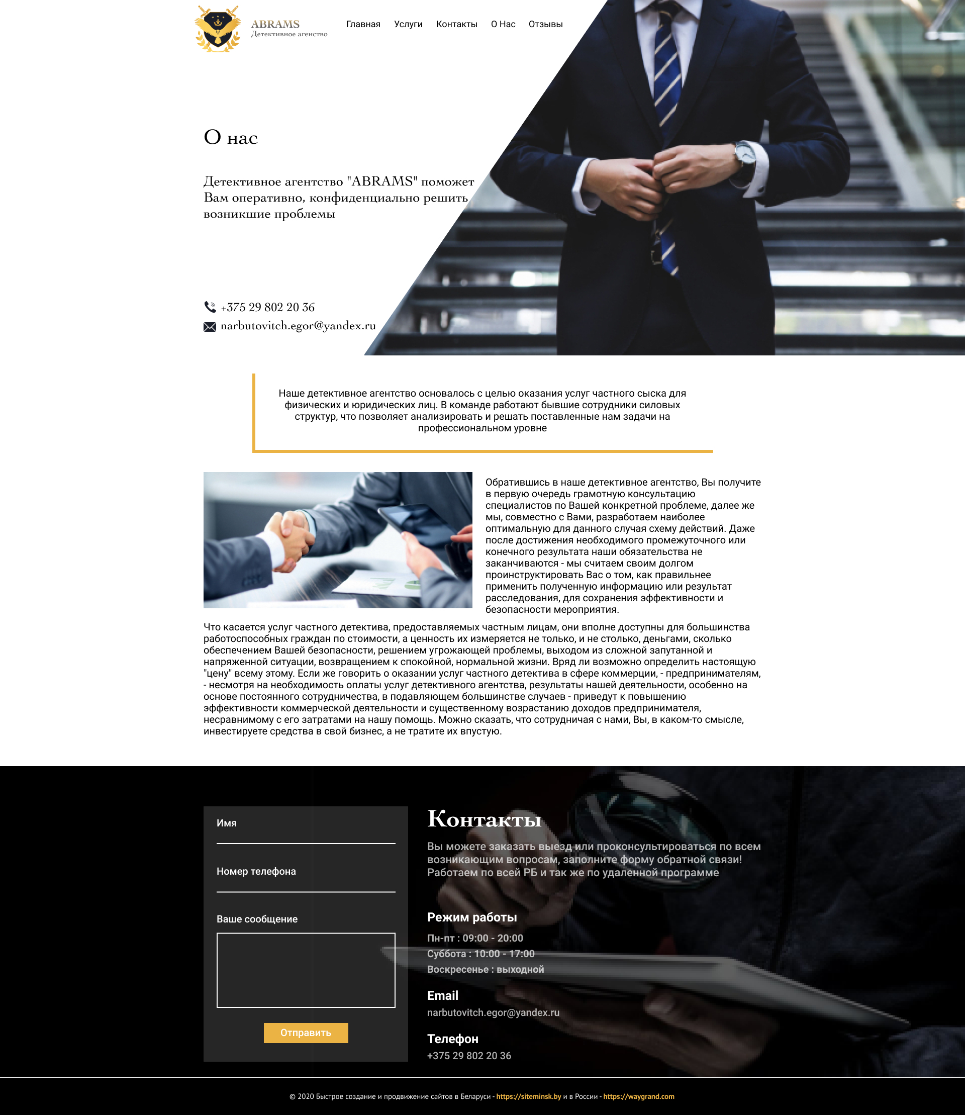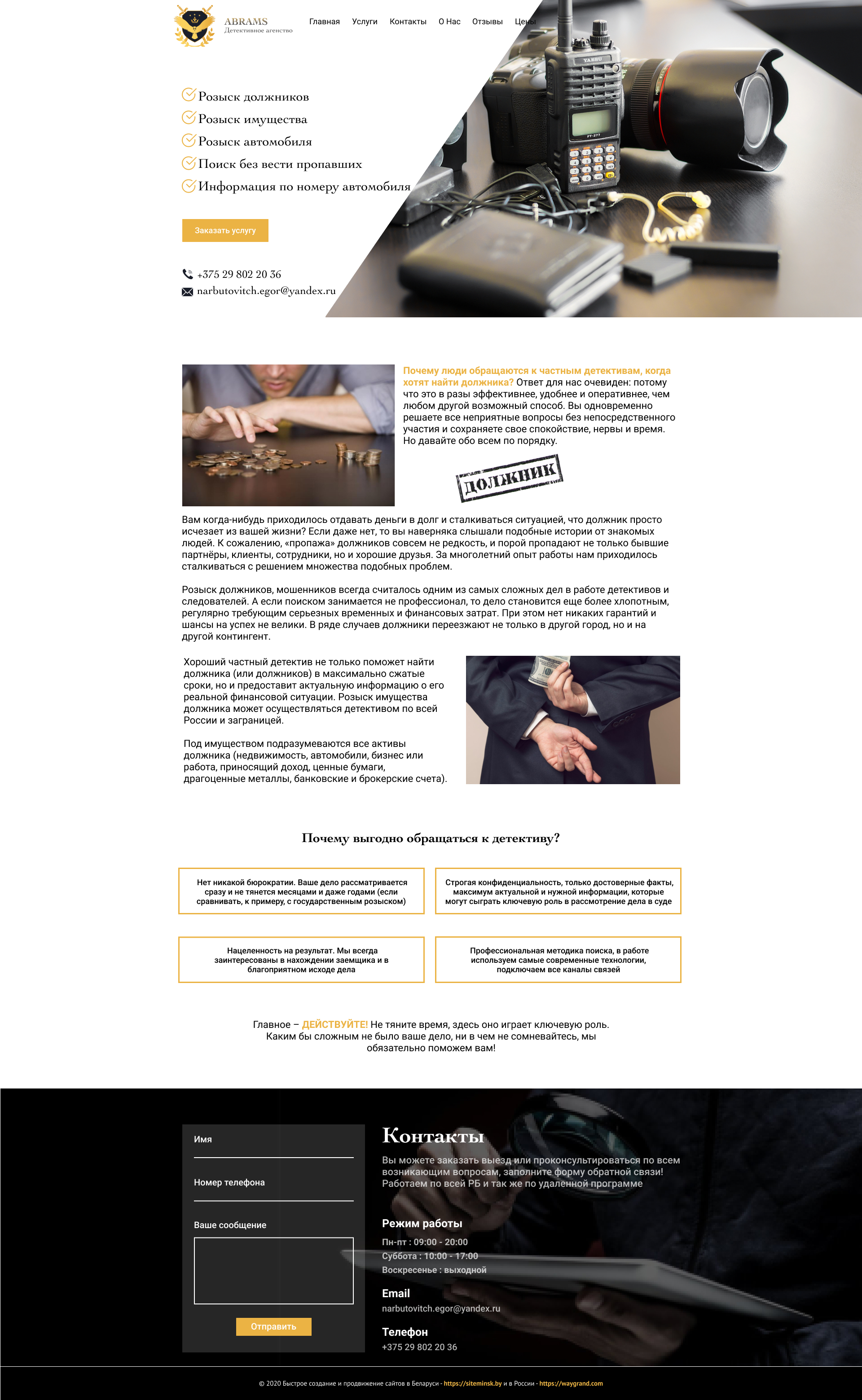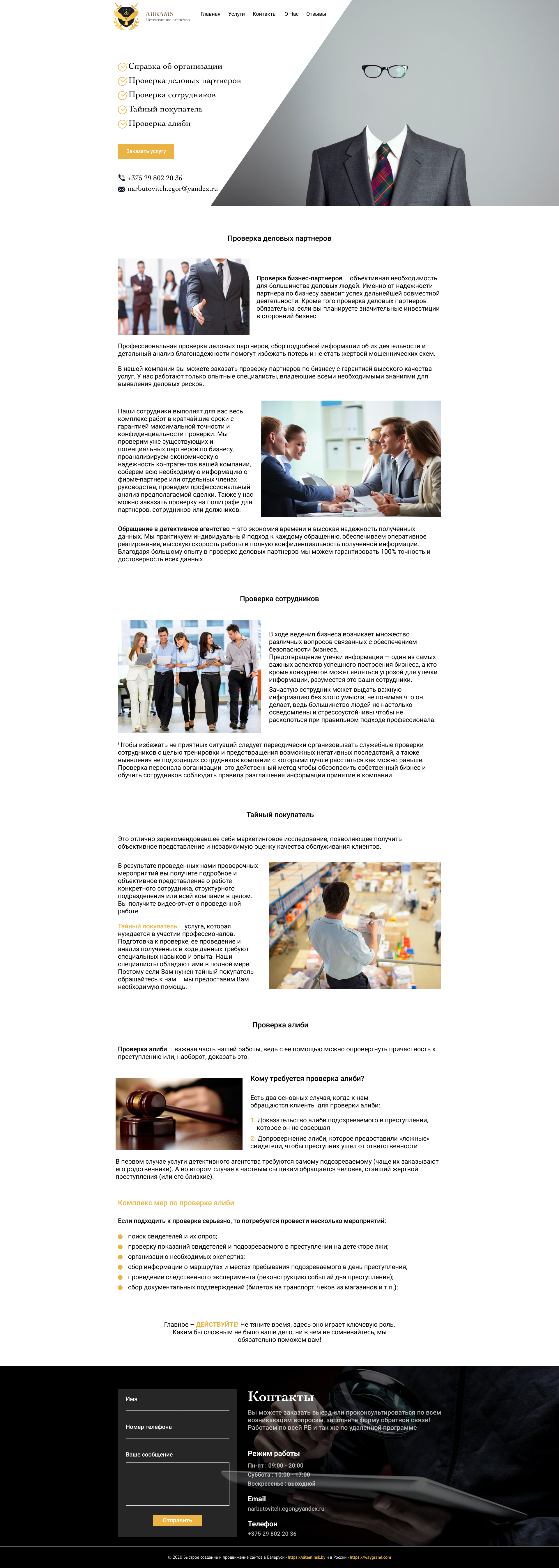 Закажите готовый продающий сайт визитка #239 в Благовещенске за 5-7 дня «под ключ»: свёрстан, отрисован и готов к рекламе. Тематика шаблона «Частное детективное агентство».