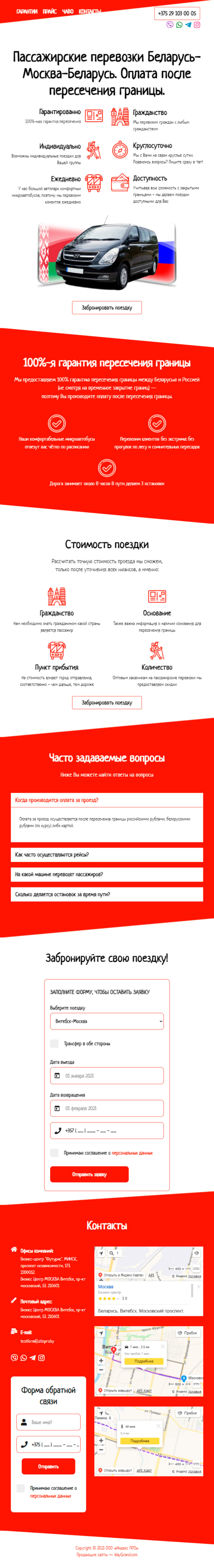 Закажите готовый продающий сайт лендинг #2528201 в Благовещенске за 1-3 дня «под ключ»: свёрстан, отрисован и готов к рекламе. Тематика шаблона «Пассажирские перевозки Беларусь-Москва-Беларусь».
