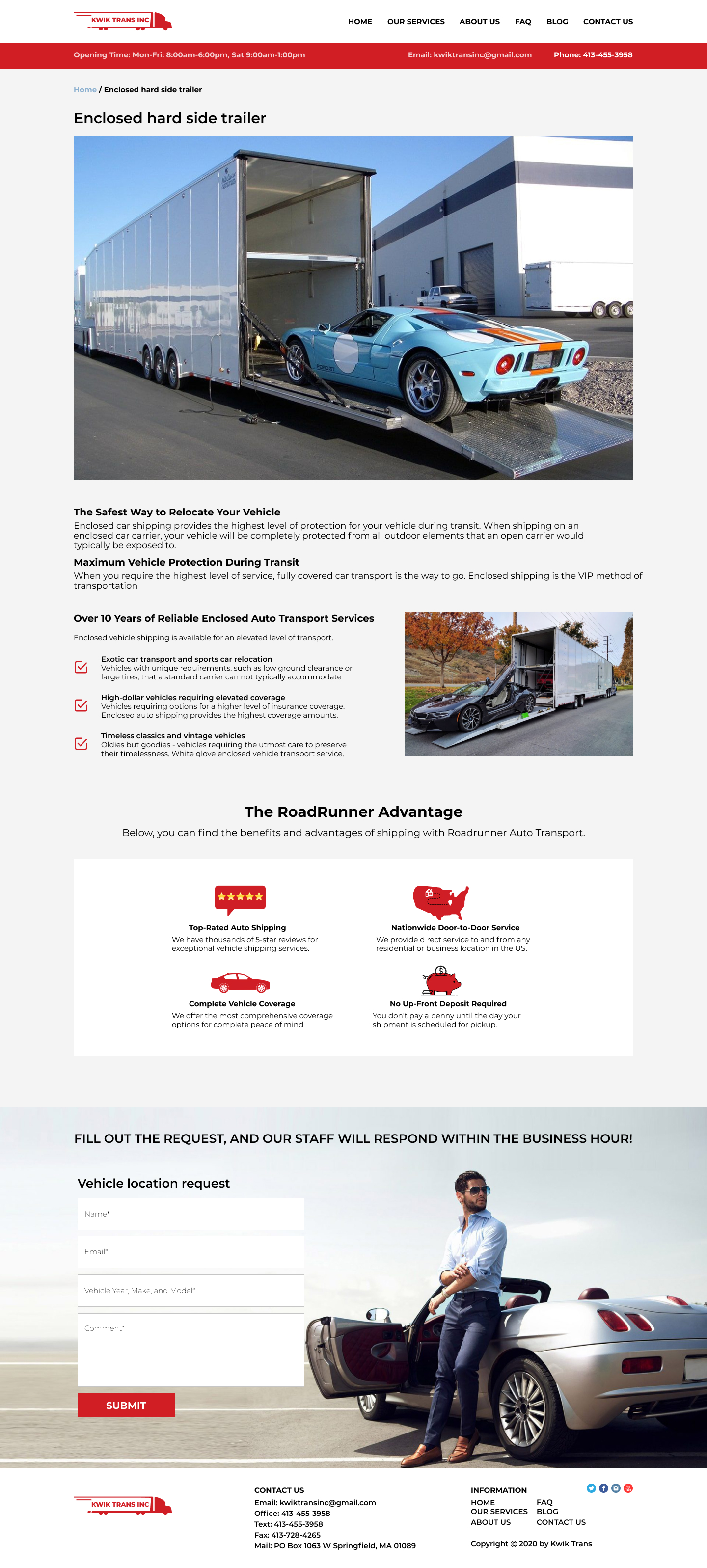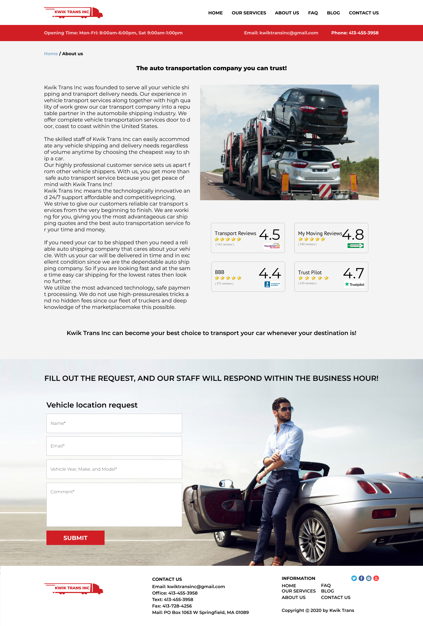 Закажите готовый продающий сайт визитка #223 в Благовещенске за 5-7 дня «под ключ»: свёрстан, отрисован и готов к рекламе. Тематика шаблона «Safe & Reliable National Auto Transport».
